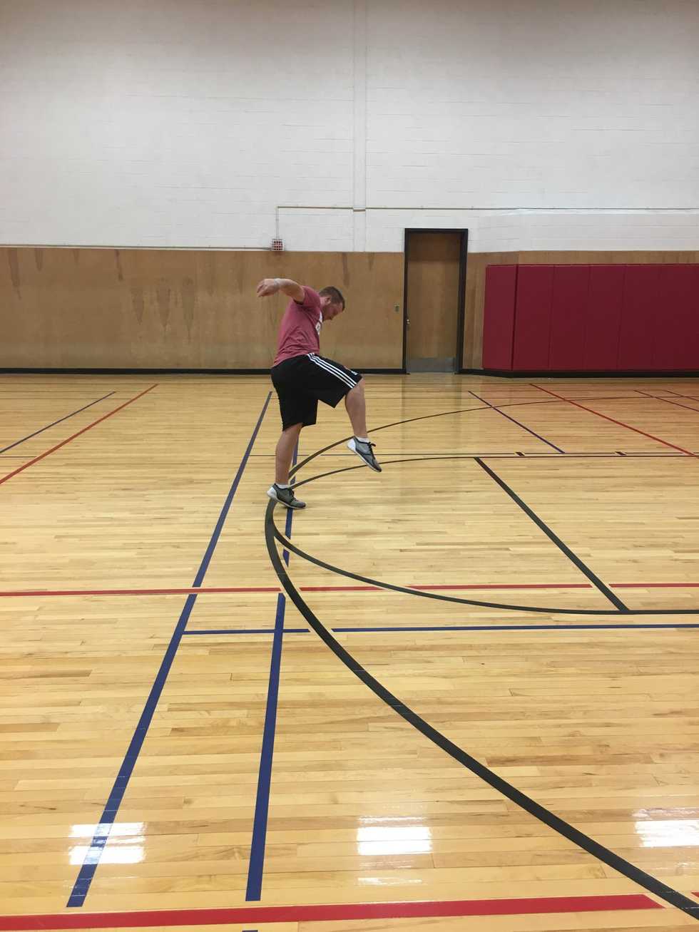 Take two steps towards the ball and plant your non kicking foot next to the ball. Keep your eye on the ball