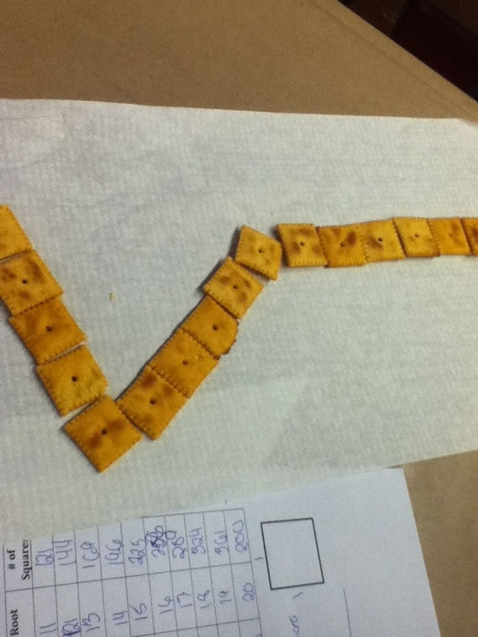 Last I added 4 more cheese nips to the length. I added one more row to the width. Now I have four on the length and four on the width.