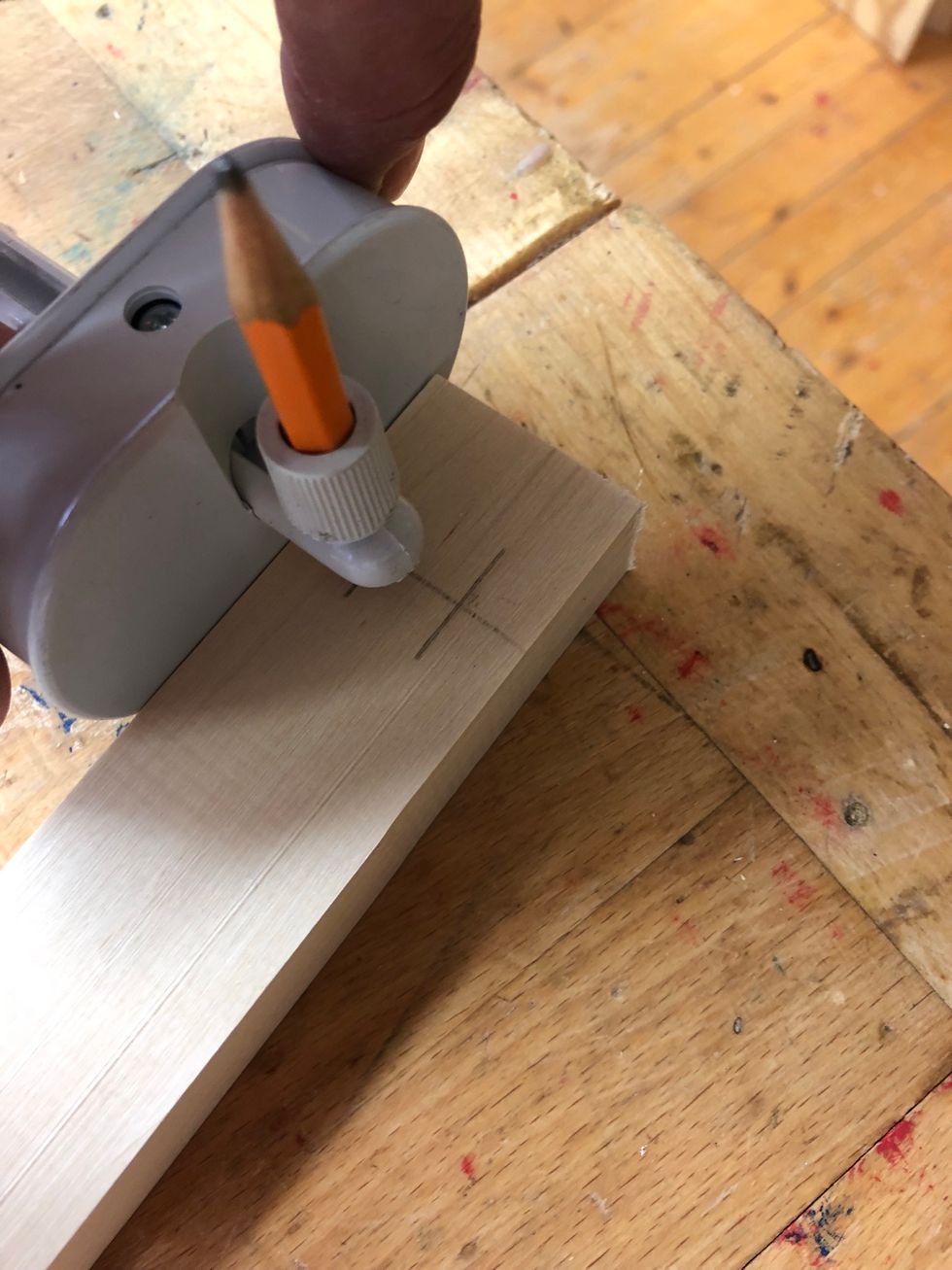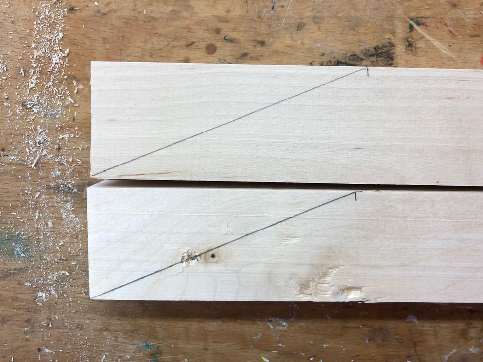 Spänn fast i bänken och såga längs strecket.