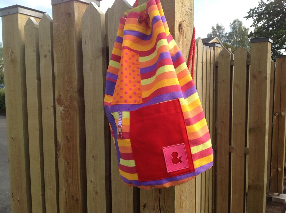 Sy ihop med raksöm och 1cm från kanten. Glöm inte att fästa, viktigt för hållfastheten.