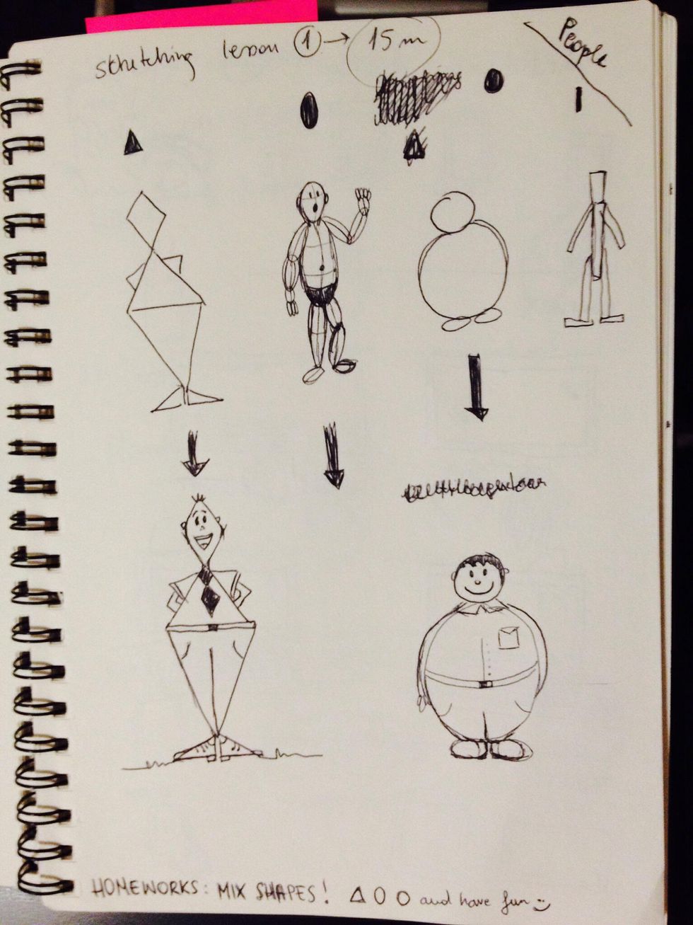 People. Assemble basic shapes and tweak them to draw people.