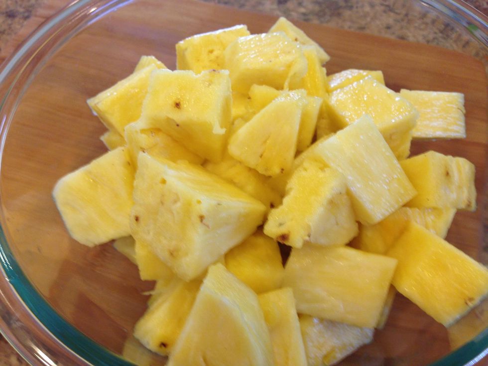 Start with one ripe pineapple. Hint: you will know a pineapple is ripe when you can smell the pineapple through the bottom and you can move the stem when you try to twist it.
