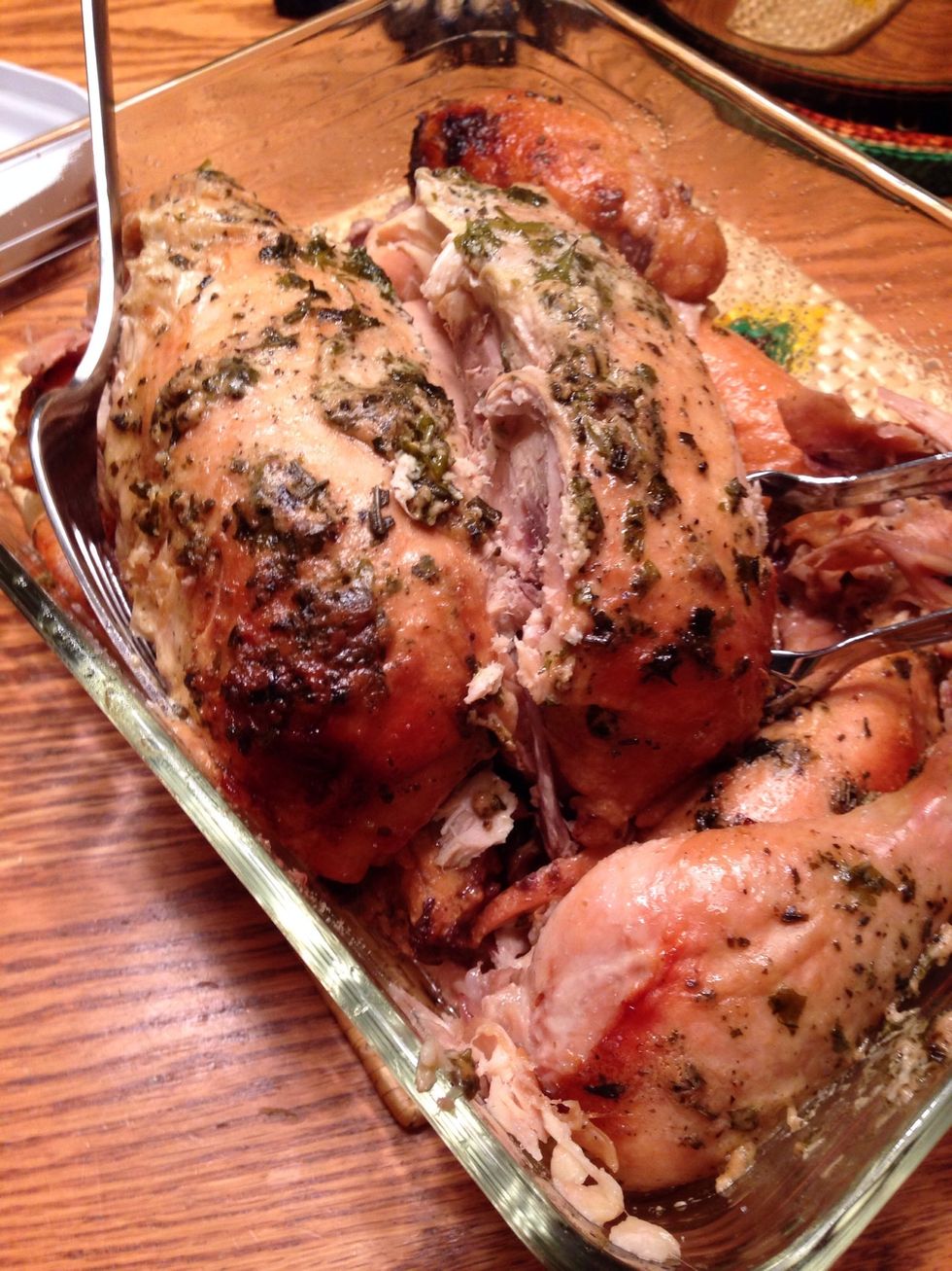 Our's was so tender, I simply scooped off each drumstick and wing, then lifted the cavity out and served in a serving dish. VERY TENDER!
