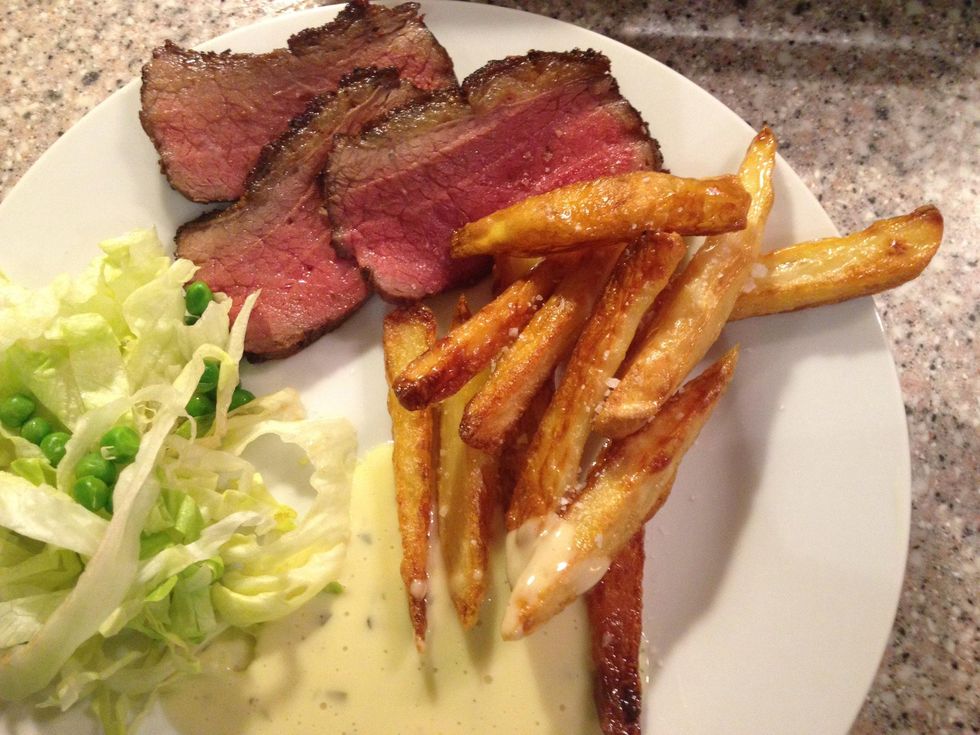 As you can see the steak don't loose a lot of fluids when carved. The slow cooking keeps the juices inside the meat.