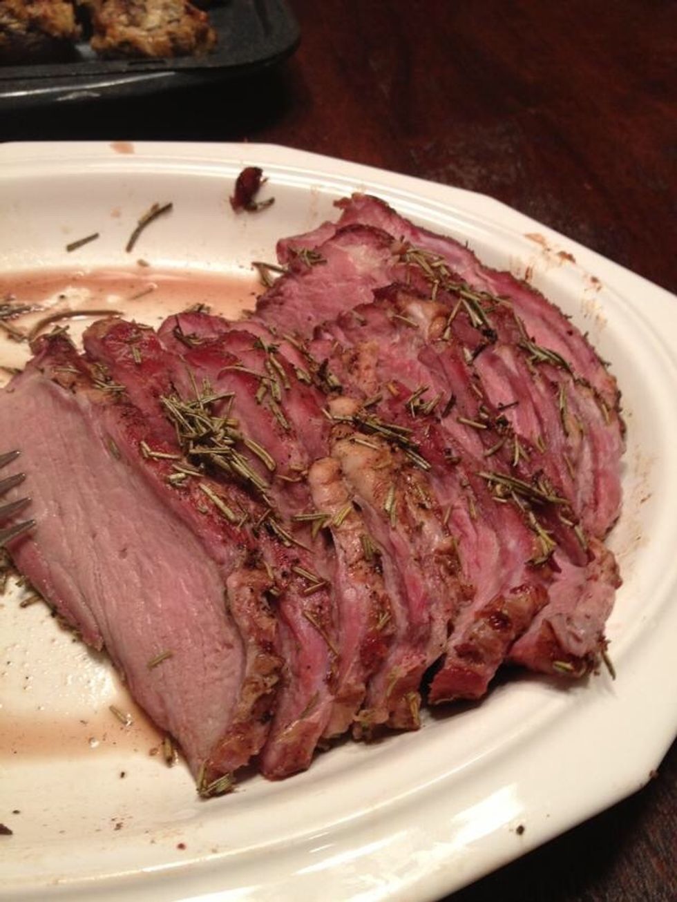 Sprinkle Kosher salt, rosemary and pepper on the Tri-tip to taste.