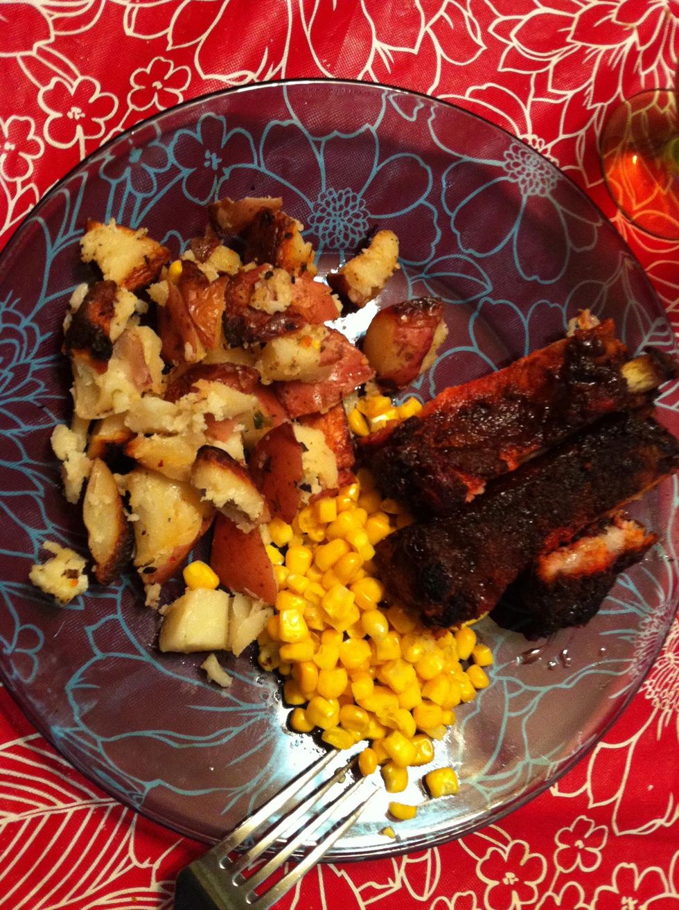 Wrapped ribs that have been rubbed and marinated in fridge.