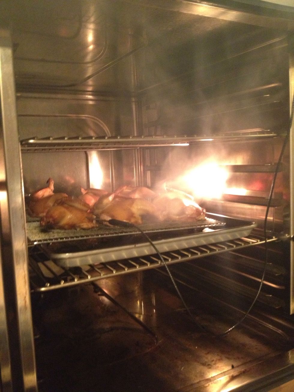 Smoke with no heat for 30 minutes and leave the chickens to rest for another 30 minutes no heat