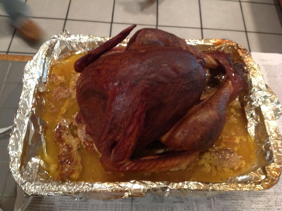 Inject the marinade all over both sides of turkey. (Legs and wings too!)