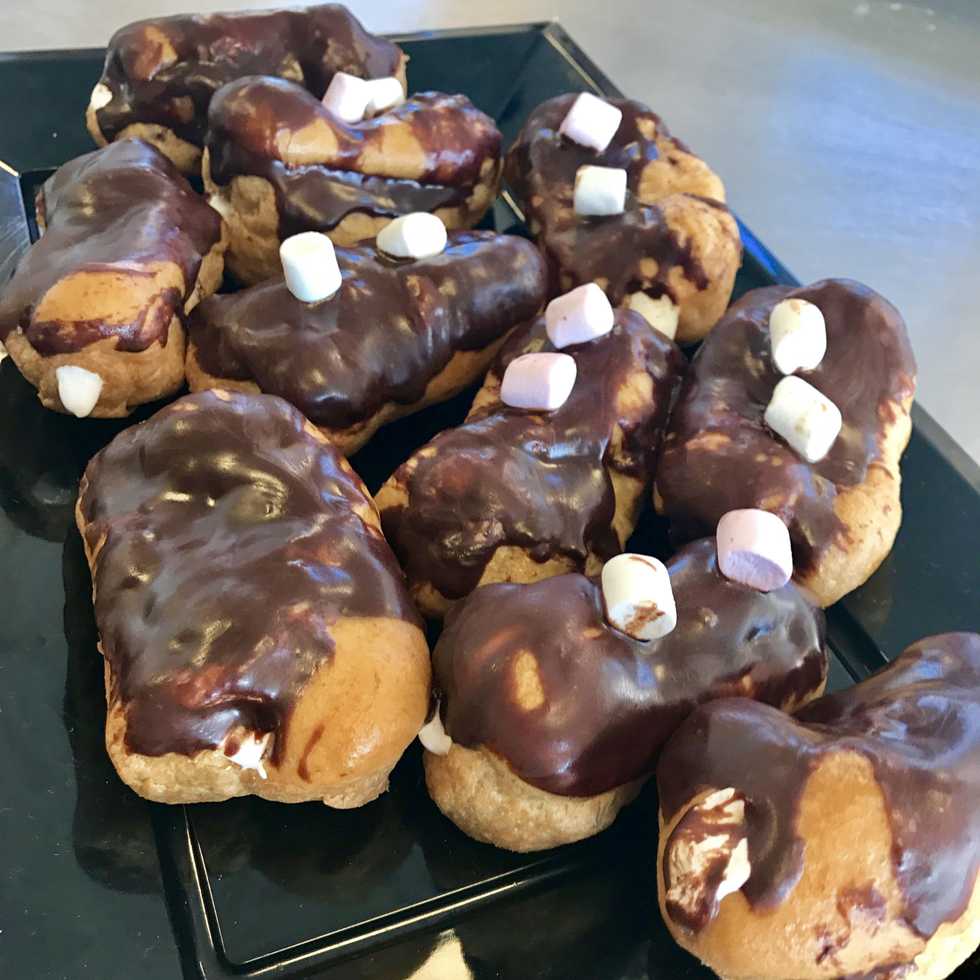 9. Remove the eclairs from the oven and using something sharp to poke a hole at the bottom or the side of the eclair and fill it with marshmallow fluff.