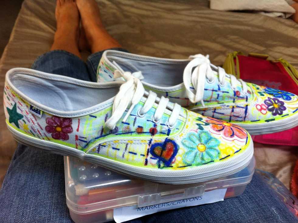 Grab a pair of sneakers new or old...Get out ur markers...Get creative...be brave.. A mistake is just an opportunity for 'creative embellishment' !!Keep adding... Ur almost done :)Waalah!! Have fun wearing your very own canvas's of art :)