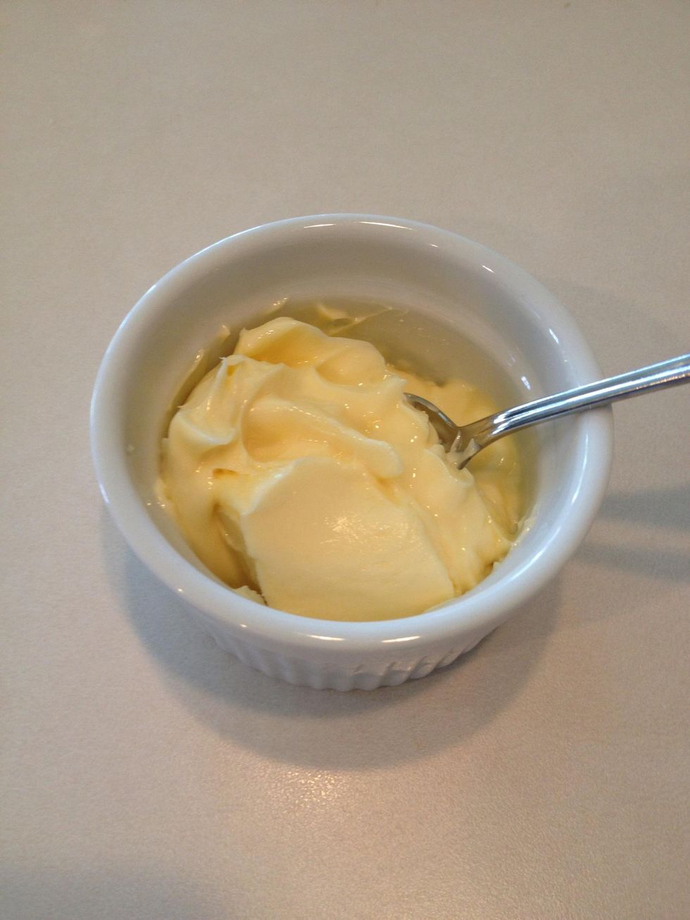Use a spoon to scrape butter out of wrapper and into a bowl.