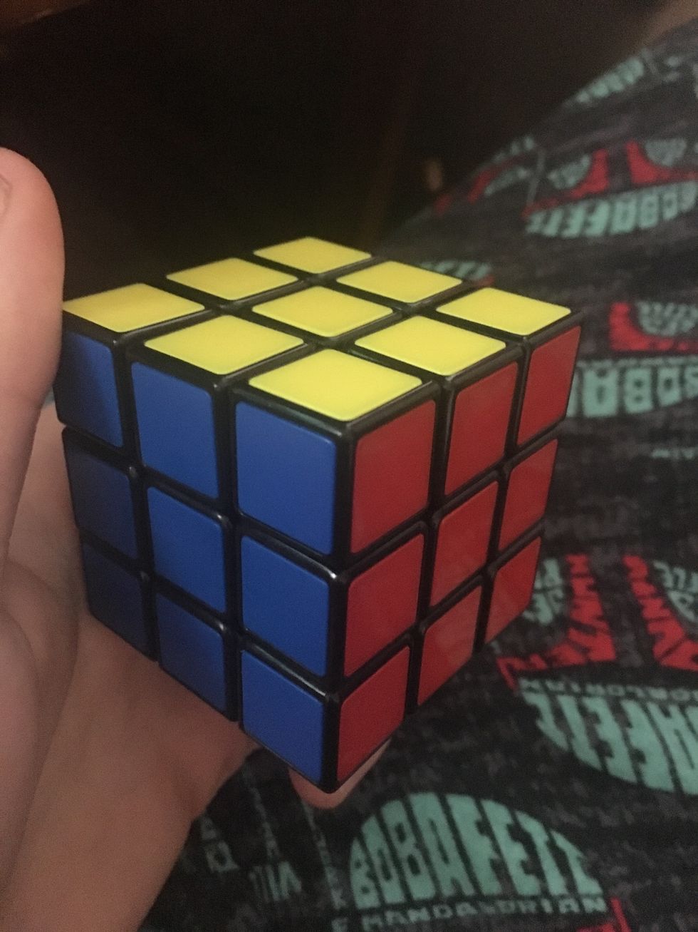 if you're cube looks like this, then congratulations, you've successfully solved a rubik's cube! if not, go back and repeat the steps.