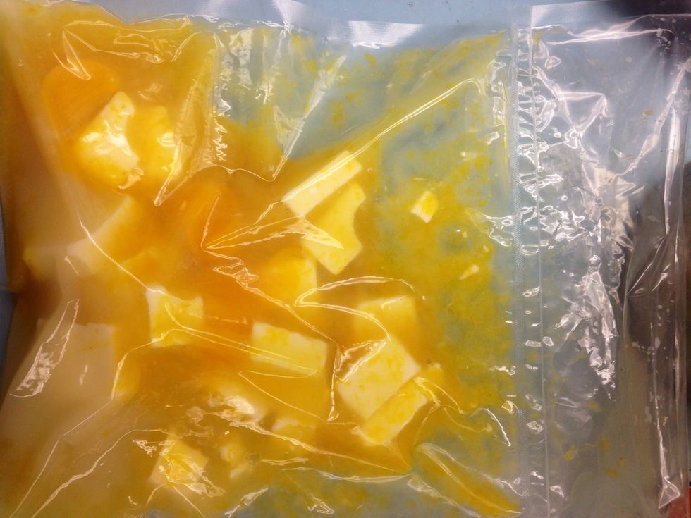 Juice zested lemons into pouch