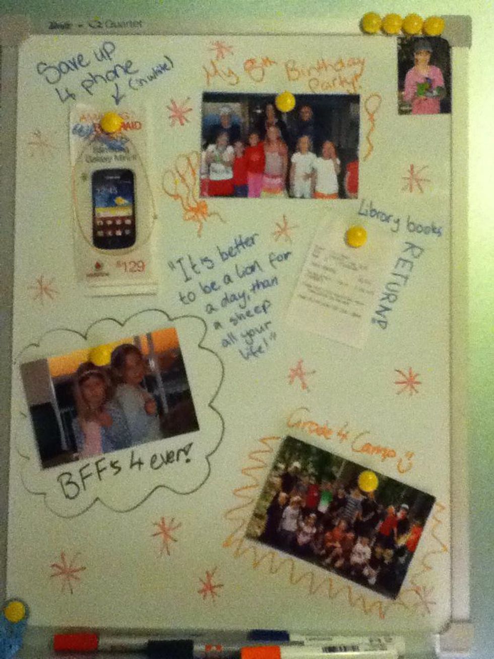 Pick out 3 (or any odd number as it looks better with odd numbers) special pics of you and your friends. Put them on your board. Eg. A school camp, a birthday, athletics carnival, etc.