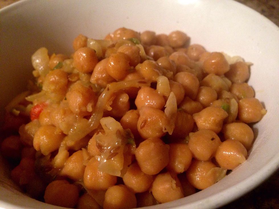 1.0 Can of Chick Peas1.0c Onion1.0c Garlic 1.0tsp Curry powder 1.0pch Cayenne pepper1.0pch Salt1.0tsp Ground Coriander1/2Tbsp Whole Geera