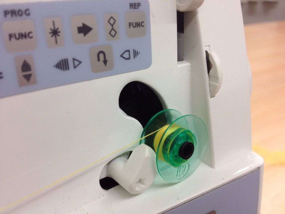 Sätt fast en tom undertrådsspolen på spolarmen till höger på maskinen.