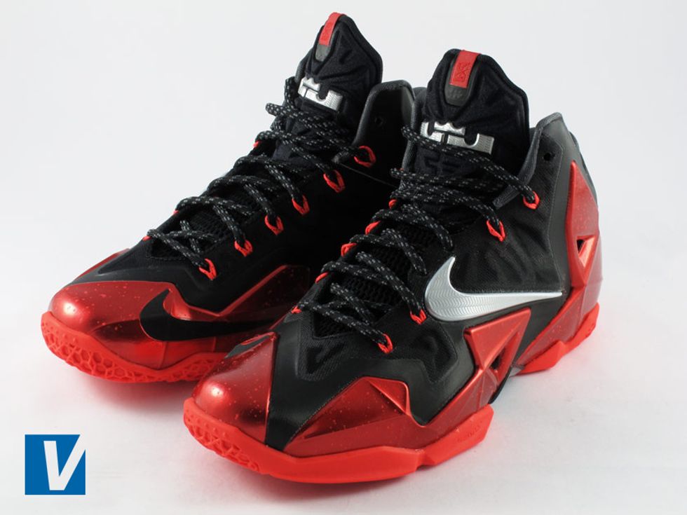 New LeBron 11's have a tab on the back of the tongue with the letters "XI" embroidered into it. Check the quality of the embroidery as well as the glued finish of the tab attachment to the tongue.