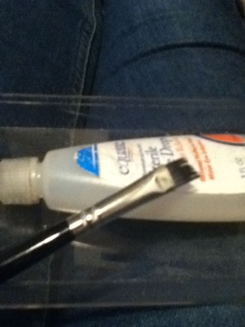 For the next part you will need eye drops, a thin eye shadow brush, and some sort of dish thing