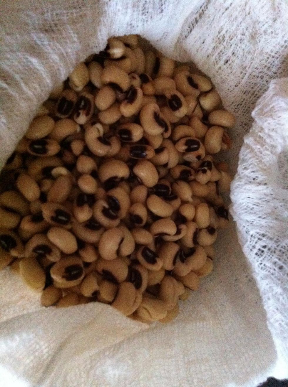 ...put them back in the covered bowl. Keep them in the cupboard and they'll continue to sprout. ( The black eyed peas need more time.)