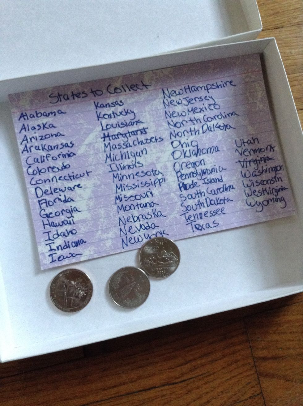 Write down the list of things to get. I'm doing state quarters, so I made a list of the states.