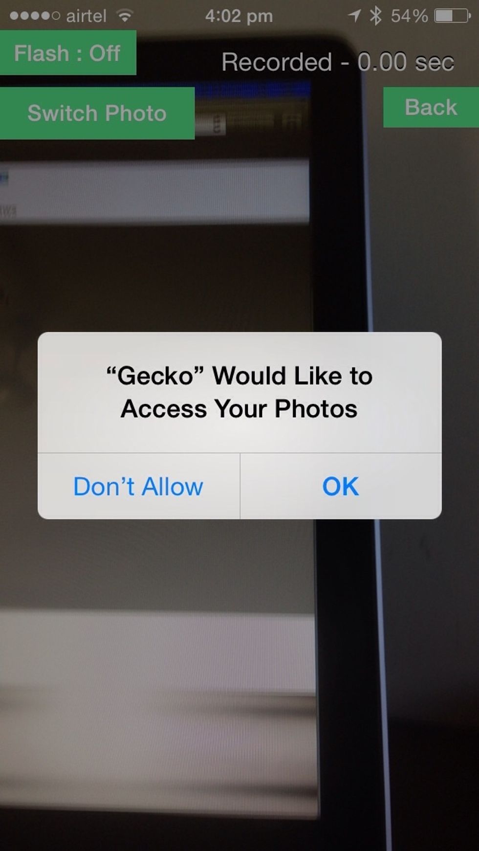 Once you want to stop recording, shake your gecko twice vertically. It will ask permission to access photos and it will save the video.