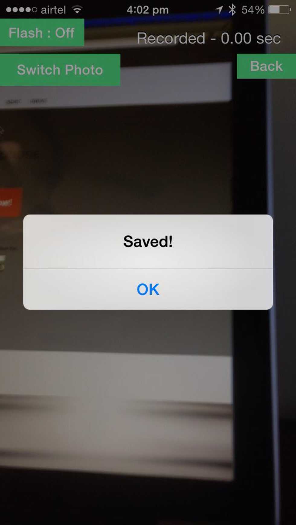 Tap on "Open Camera" The App will open Camera. If this is the first time you are using this feature, App will ask necessary permissions to use camera