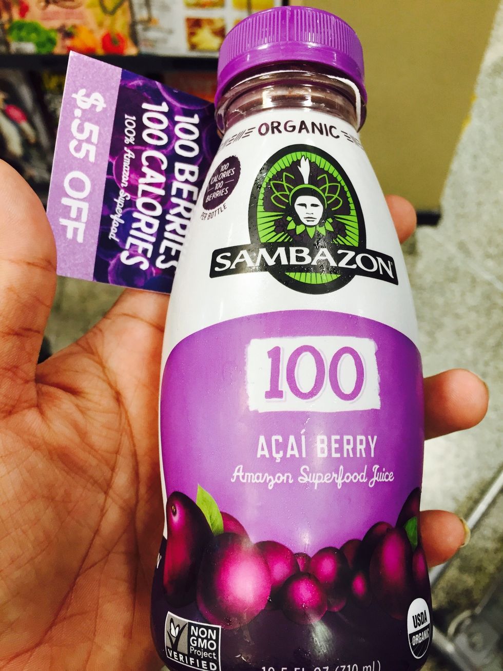Another example and easier one are the BOGO like Publix. Buy one Sambazon $2.79 and get one free. You are able to use 2 coupons. As you could see the item has a .55 cent hangtang.