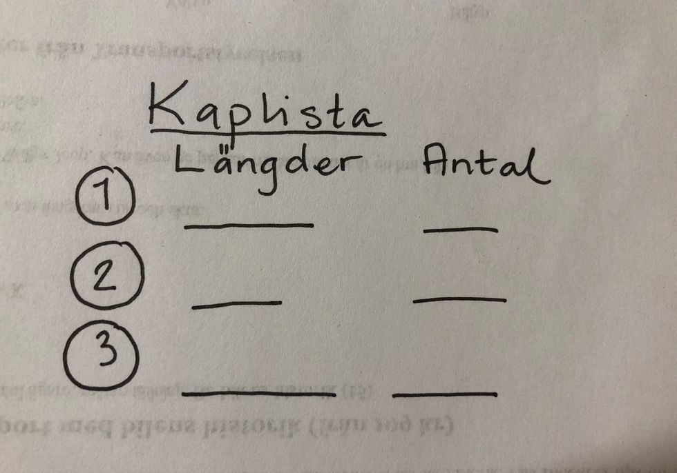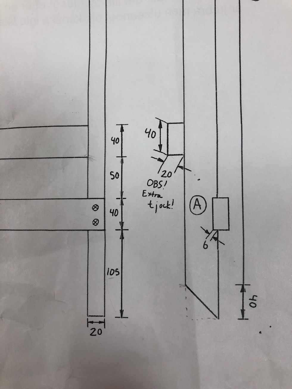 Börja med att läsa alla ritningarna noga. Tre papper /sex sidor. Vi går igenom dem tillsammans och gör en kaplista. Ta kort på den och lägg under skisser i claesroom, spara den.