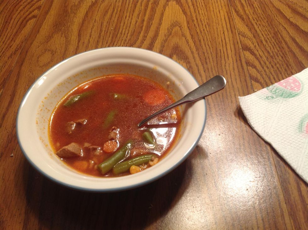 Add the tomato purée and half of the beef bouillon and stir. Cook on medium high for 30 min before first taste. Add more bouillon and tomato paste to taste, stir. Always cook 30 min between tastes!