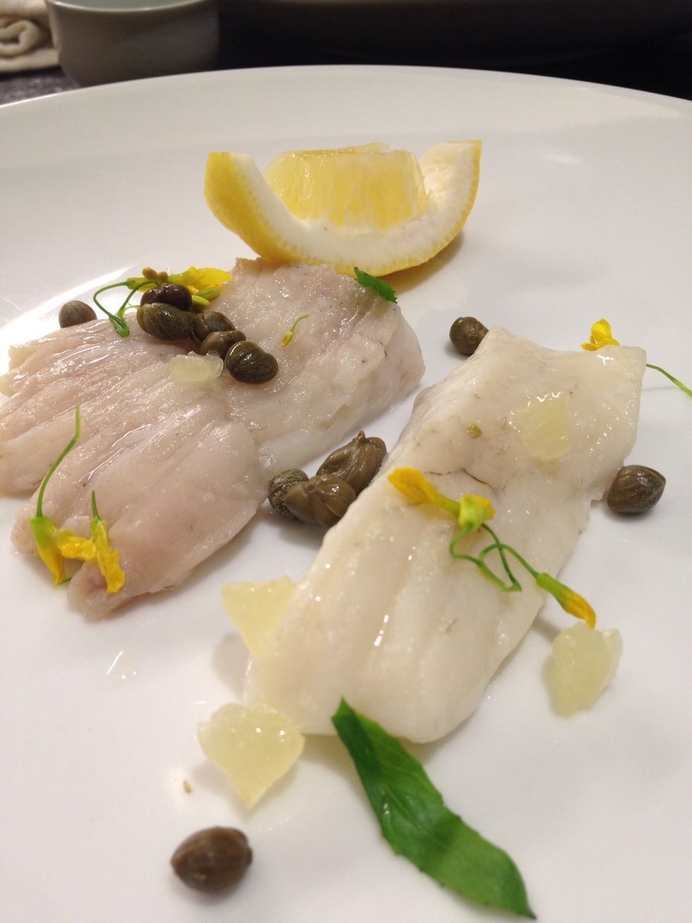 Get your stuff together. Bring the fish to room temperature for a couple minutes. That will allow a more even cooking