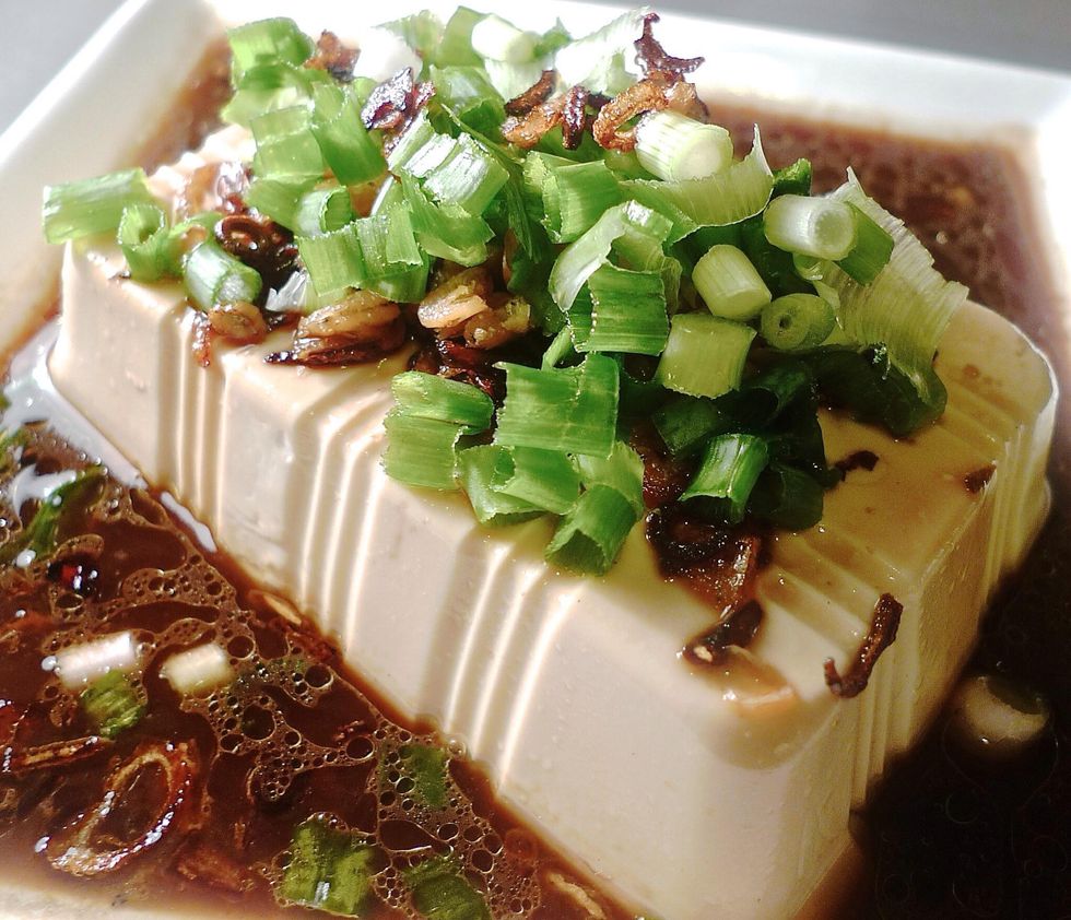 Steam Bean Curd (Tofu) With Hot Shallot Oil