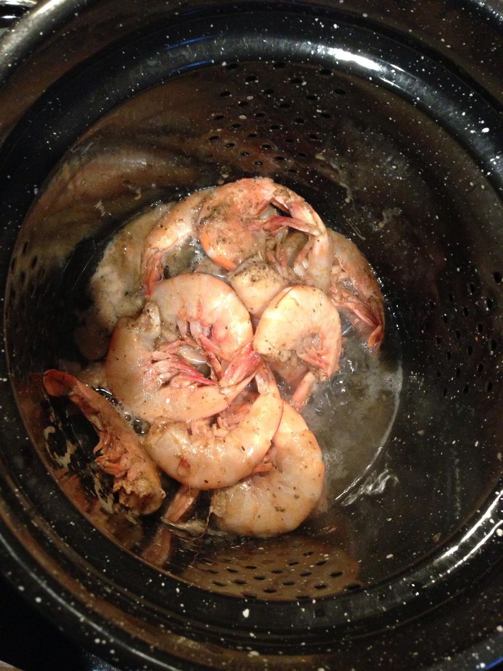 Put Old Bay in a plastic bag-add shrimp seal and shake. Open bag and transfer shrimp to pot. Steam 3-5 mins depending on shrimp size!