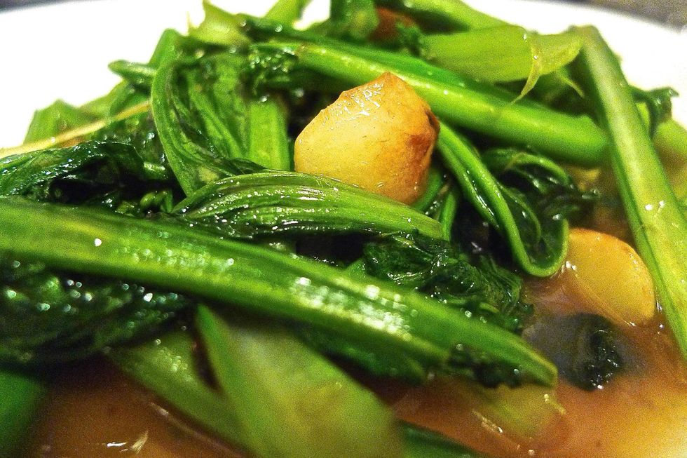 The Chinese greens should still be bright green and the stalks should be soft and yet crunchy.