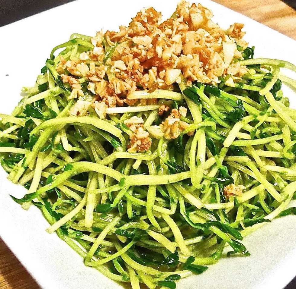 Stir fry lightly the sweet pea sprouts to make sure the garlic oil is infused into the vegetable.