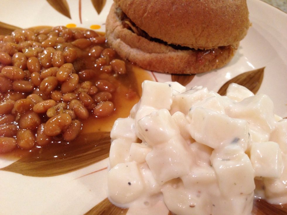 All you need is canned diced potatoes, your favorite salad dressing, and some mayo.