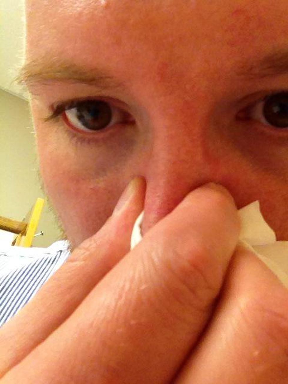 You can position the tissue just under the nostrils to keep things cleaner.