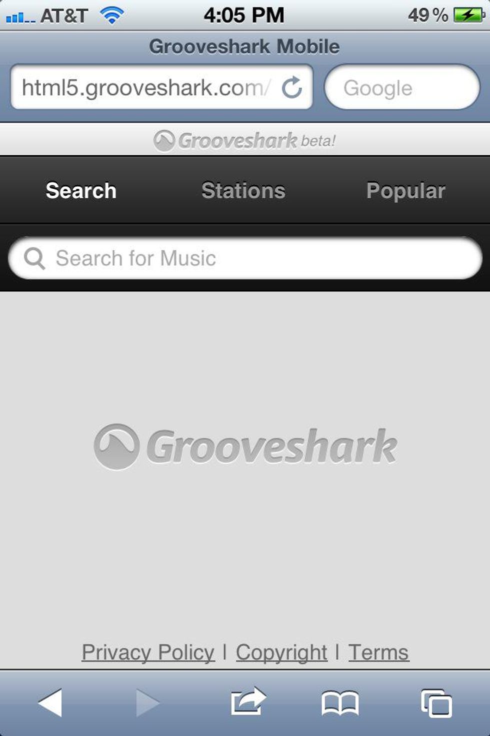 Open up safari. Type "grooveshark.com" into the url thing. Hit go.