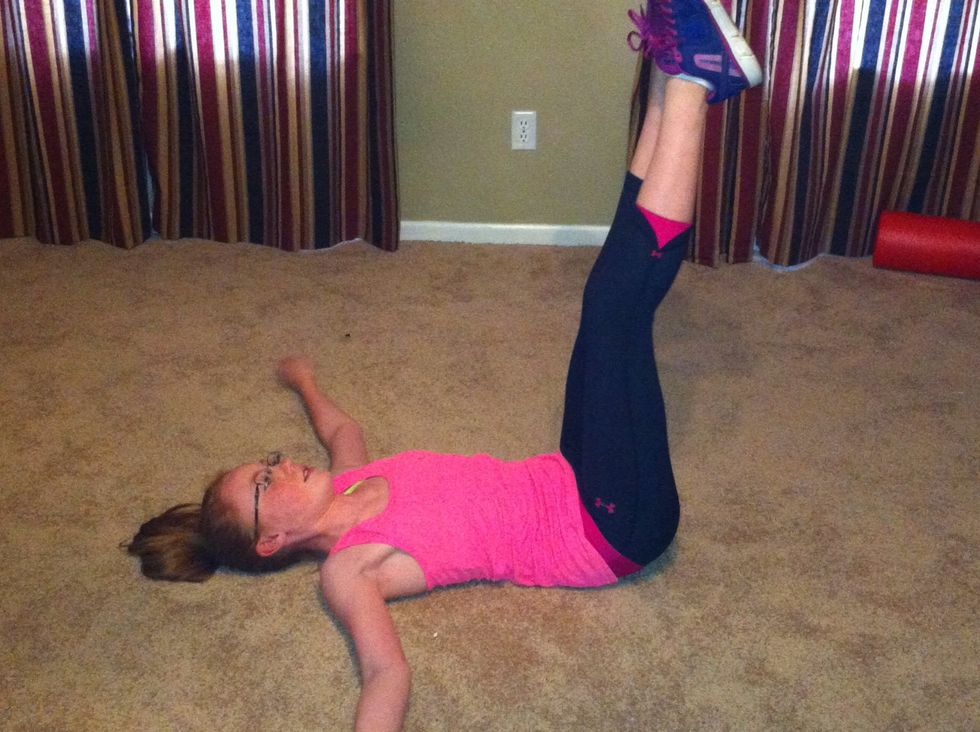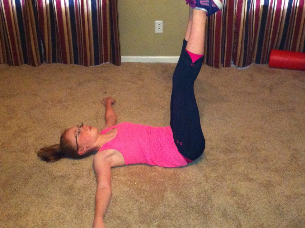 Lie on floor with knees bent and feet flat on floor. Raise rear so that your making a straight line from shoulders to hips. Hold for 10 seconds. Lower to floor and repeat 10 times.