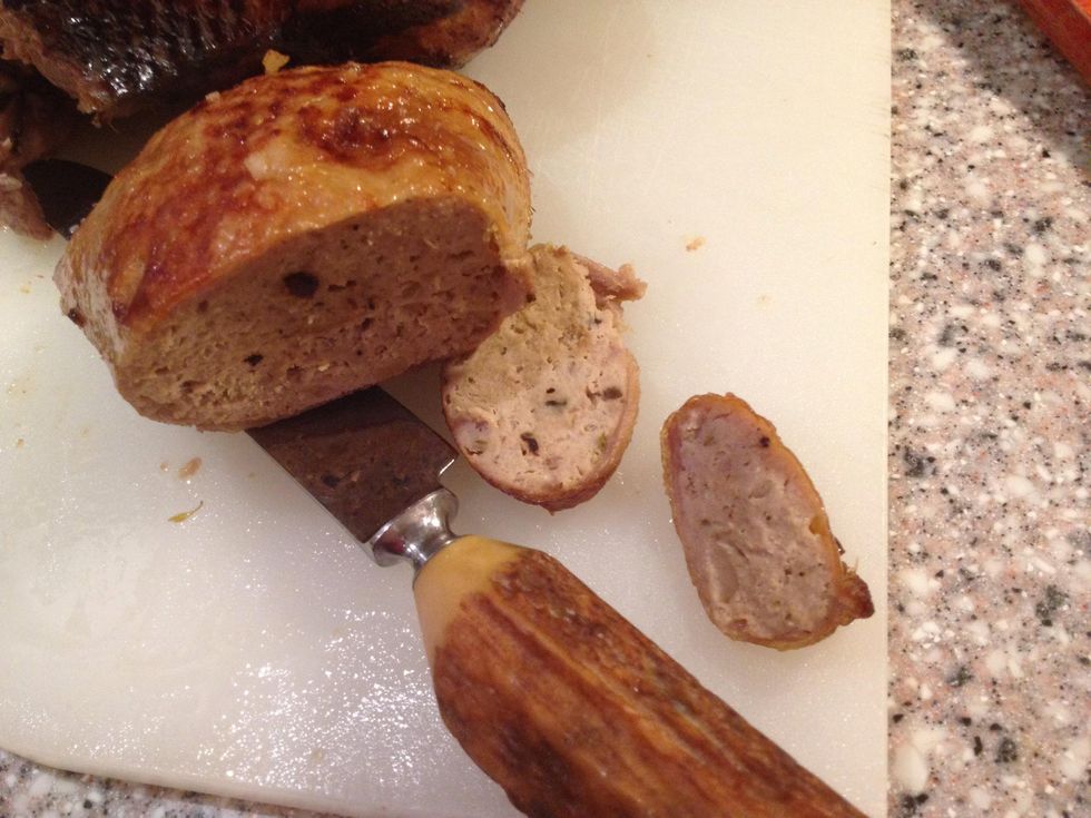 Don't over stuff as the meat inside will expand when cooking. Leftover stuffing is going in the freezer and will be a nice meatloaf later this month.