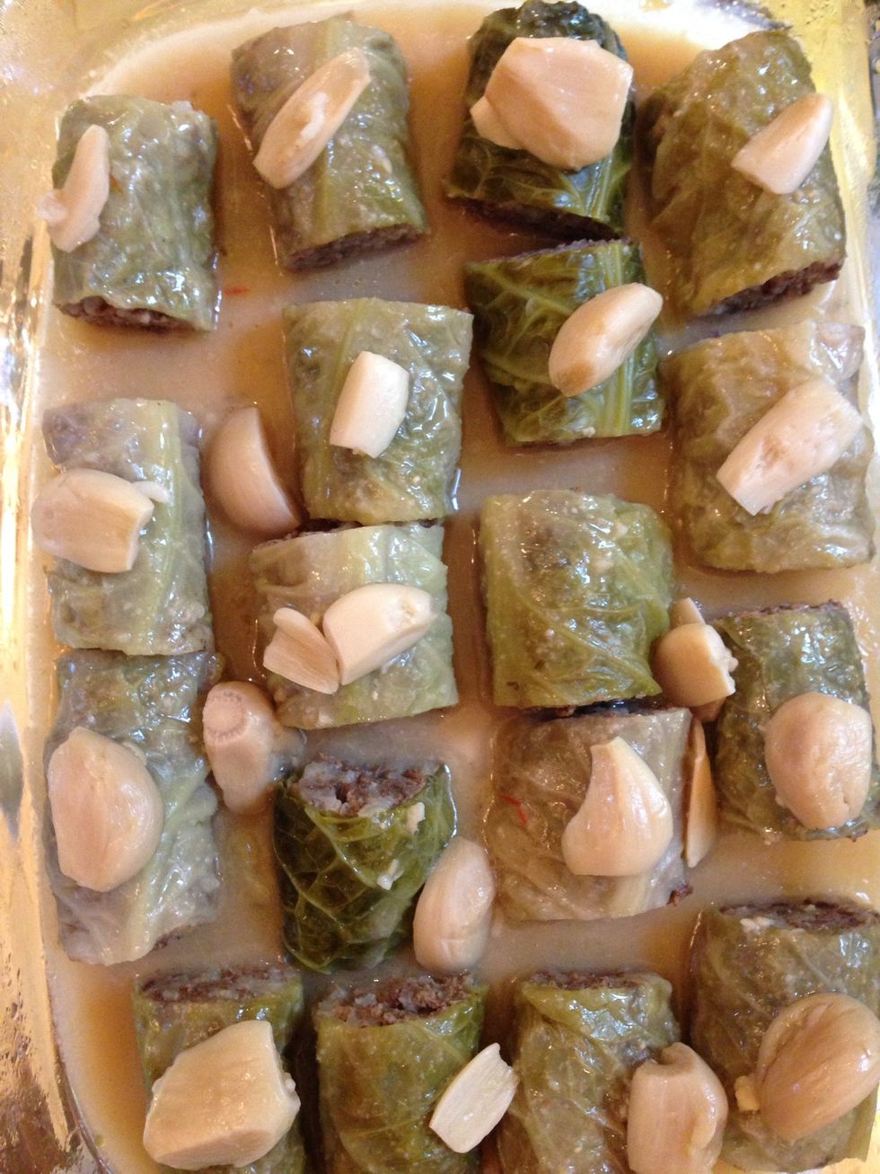 Take out. Cut the 2 ends of each rolland then in half arrange in the serving dish decorate with the cooked garlic. And add the sauce. If z sauce is too loose reduce it on high hire 10 mins
