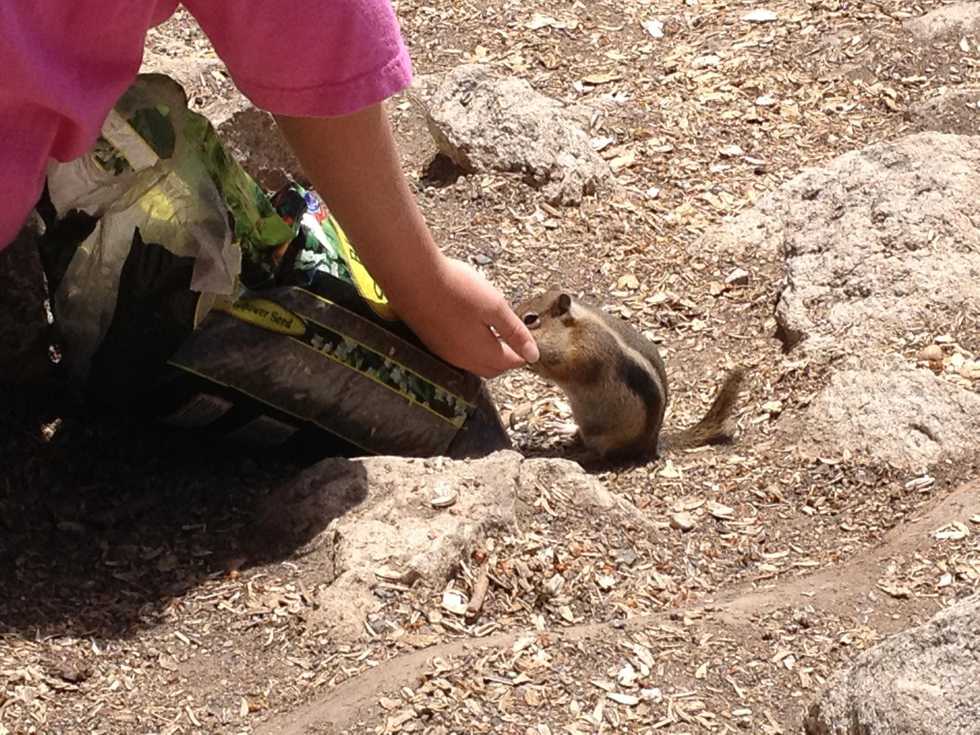 Make sure you are still and patient. Put your hand on the ground and before long, you might just attract a chipmunk.