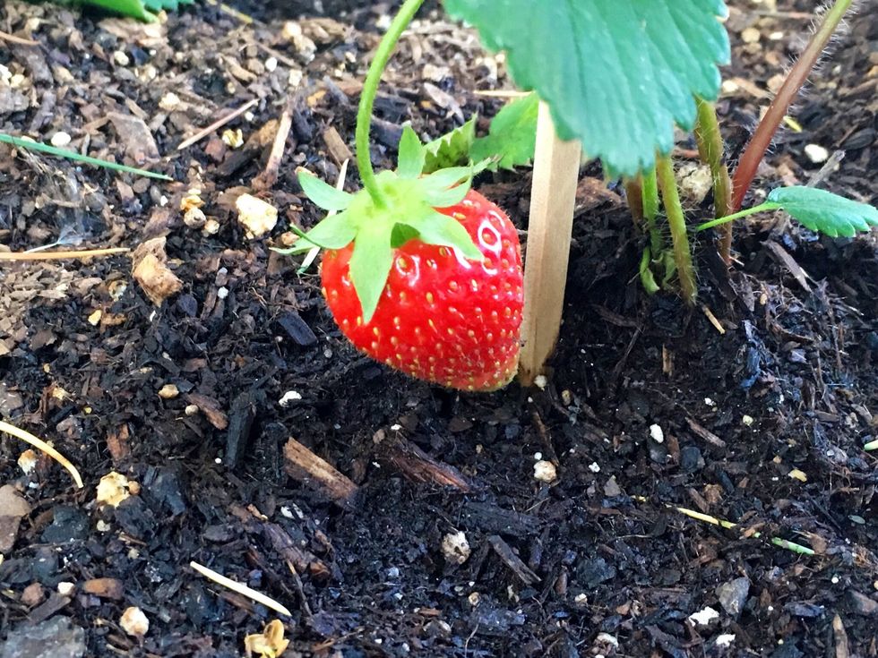 Strawberry plants have a hard time standing straight because the strawberries tip it down