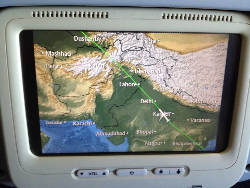 See if you can get a glimpse of places you haven't seen before and perhaps haven't planned to visit either. I saw snowy montains in Afghanistan and dusty roads in India (photo taken when returning).