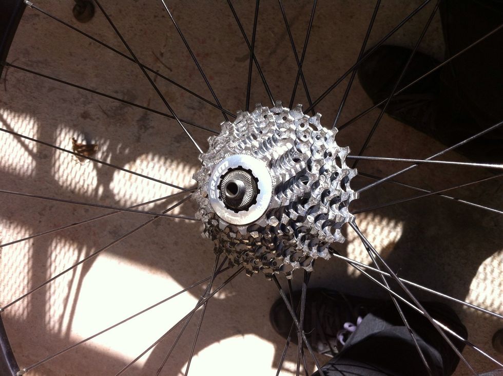 all the cogs are on! ps. take out your skewer, I forgot too. it is the quick release axel for those who don't know.