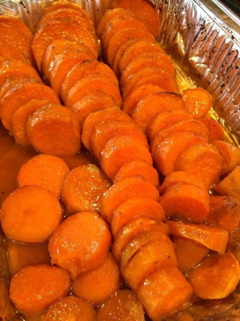 Raise the oven temp to 475f, after basting the sweet potatoes bake them until the syrup thickens and the sweet potatoes have caramelized bet. 20-25min . Baste the potatoes once or twice if needed.