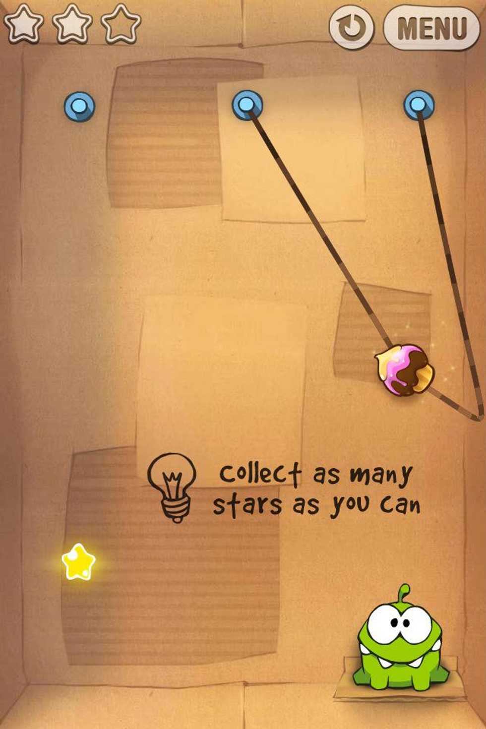 Download Cut the Rope from AppStoreOpen Cut the Rope..And now to the tips & trix, did you know that there is 3 different candies in Cut the Rope? Press the red and yellow one to switch candyDonut Candy..Cupcake Candy..