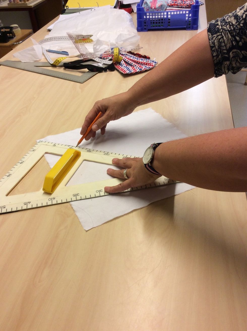 Klipp nu ut en kvadrat på 6x6cm och nåla fast den mitt på tyget.