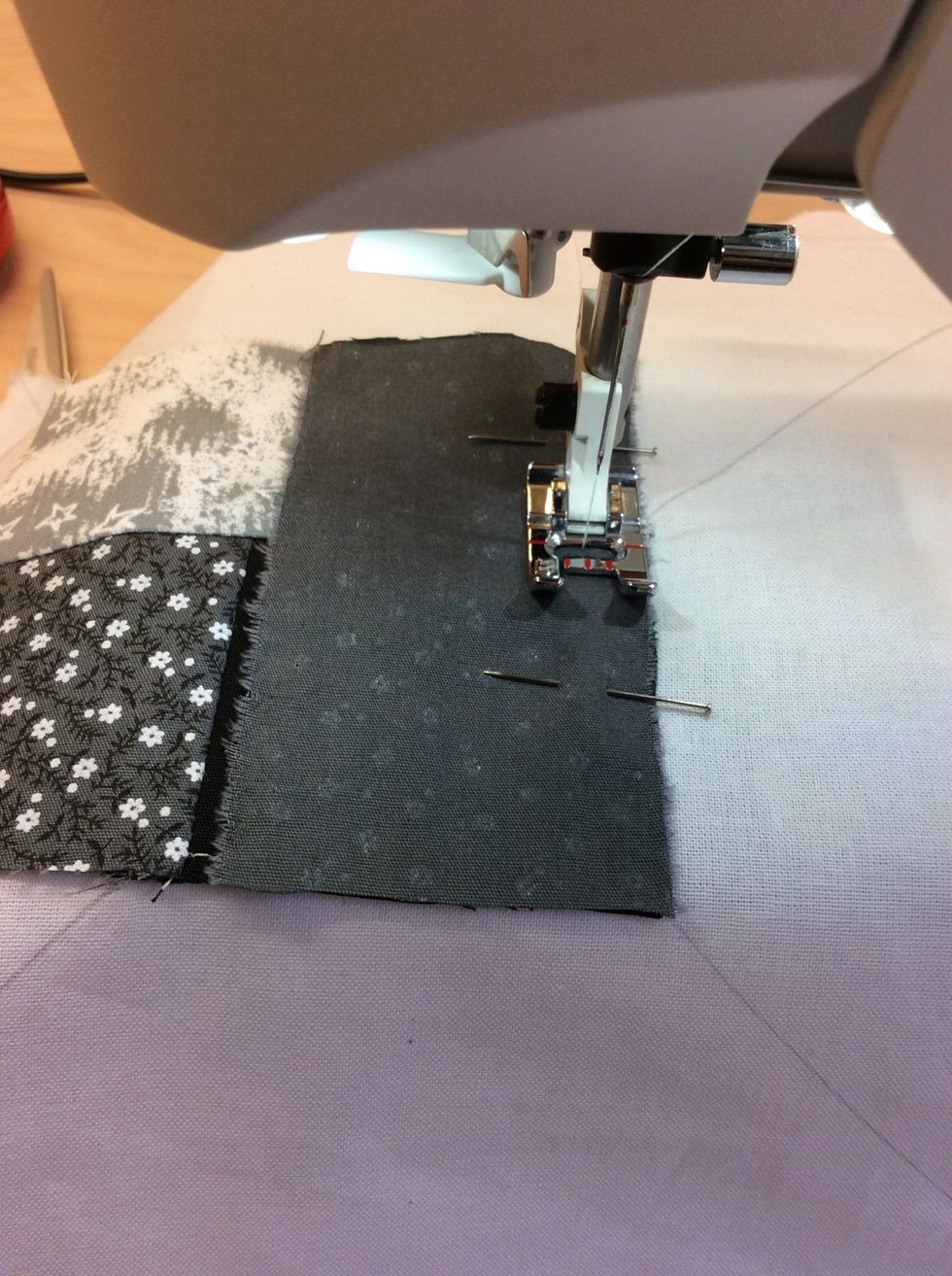 Nåla fast nästa tygremsa räta mot räta på nästa sida.