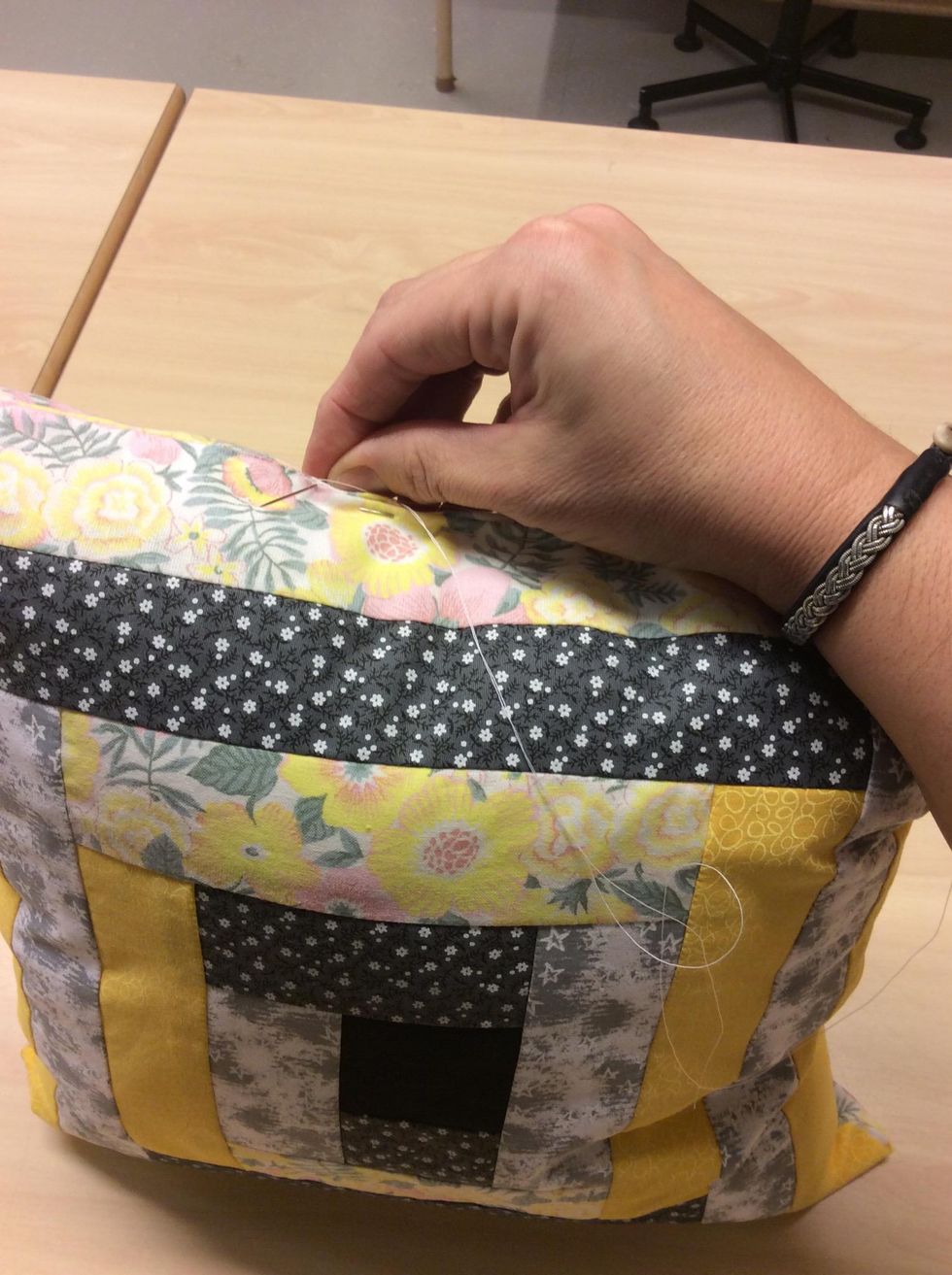 Till slut har du sytt fast 4 remsor på var sida och då är framsidan på din kudde klar, GRATTIS 😀