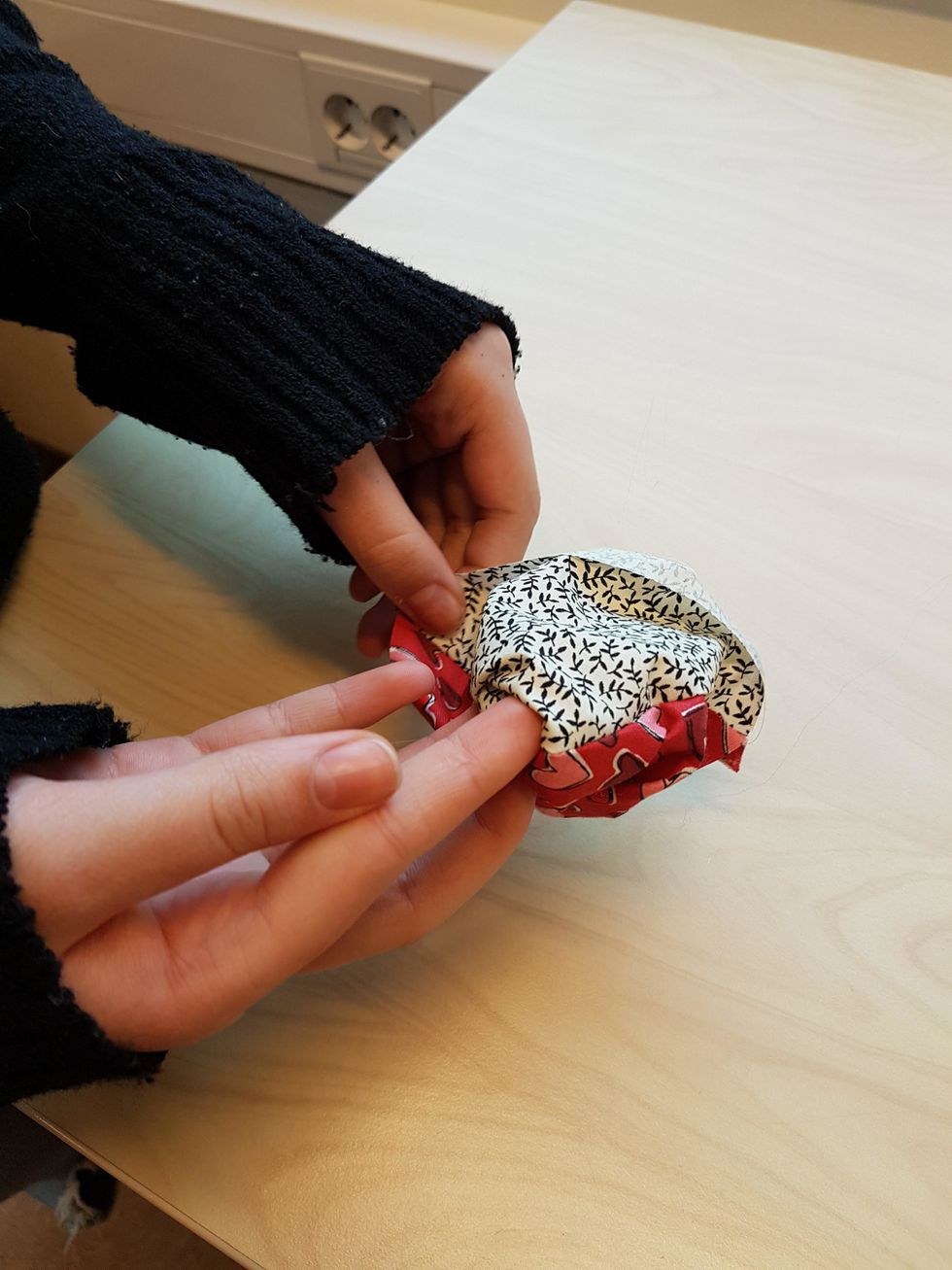 Nu är det dags att vränga arbetet. Det betyder att du ska vända ditt arbete så rätsidan kommer utåt.